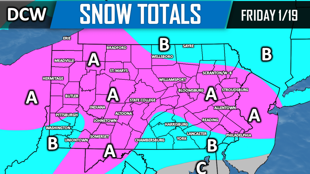 Area A: 2 to 4 inches of snowfall is likely. Isolated amounts up to 5 inches possible.